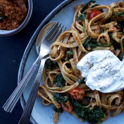 - Jeg har lavet vegetar spaghetti med kødsovs til Malte. Jeg kom linser i, istedet for kød, og den blev virkelig lækker. Opskriften kommer på bloggen i morgen.